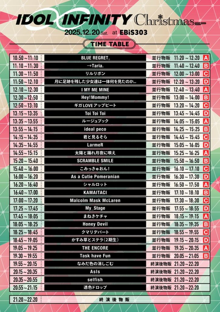 時間:開場10:30/開演・出演10:50/特典会11:20~12:20(A)
